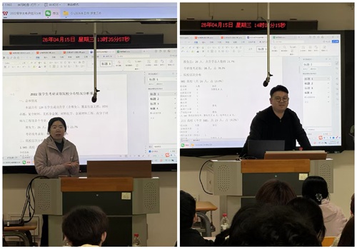 会上,高冰结合学院2022级考研数据,从考研整体趋势、分数线变化规律、不同院校报考难度等方面进行了系统分析,帮助同学们更清晰地把握当前考研形势。宋立新深入解读了学院研究生报考政策,并对近三年学院考研录取数据,围绕录取率、录取院校分布、复试考核重点等内容进行了分析,帮助同学们了解学院考研的整体水平与优势方向。